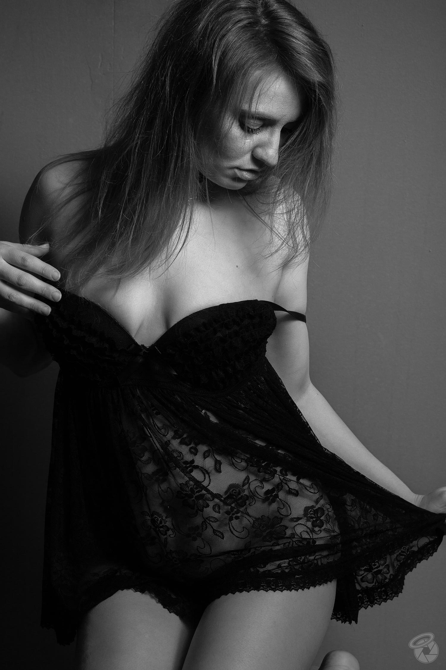 MissMae in the studio, wearing a sexy little babydoll lingerie peice with no panties on below. Studio posing with a single light source for artistic nudes. MissMae shows off her shaved pussy, opening her legs wide for a great view of her holes – very sexy boudoir studio set!
